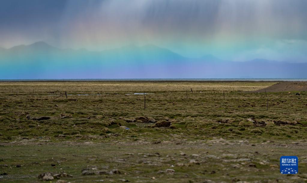 這是在普莫雍錯(cuò)附近拍攝的彩虹(7月4日攝)。新華社記者 孫非 攝