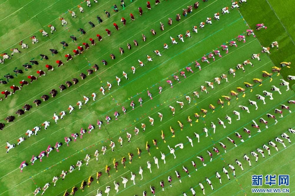 8月10日,演員在開幕式上表演舞蹈(無人機照片)。新華網(wǎng) 旦增努布 攝