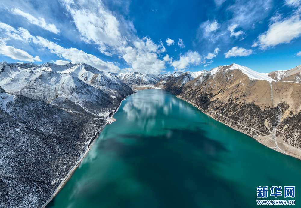 12月10日拍攝的嘉乃玉錯(cuò)湖邊(無人機(jī)照片)。新華網(wǎng) 旦增努布 攝
