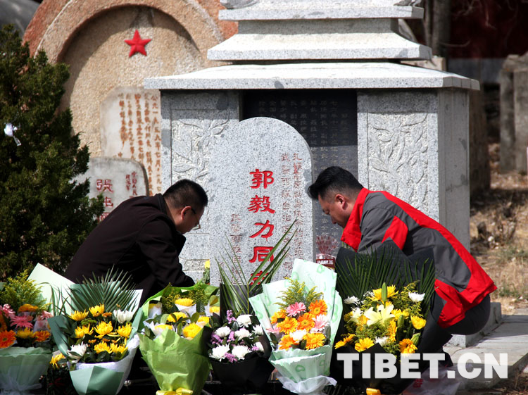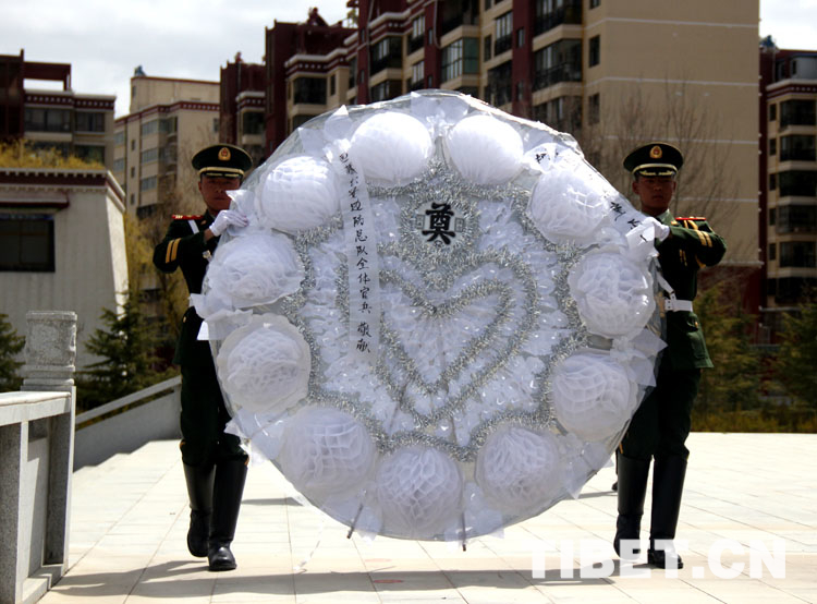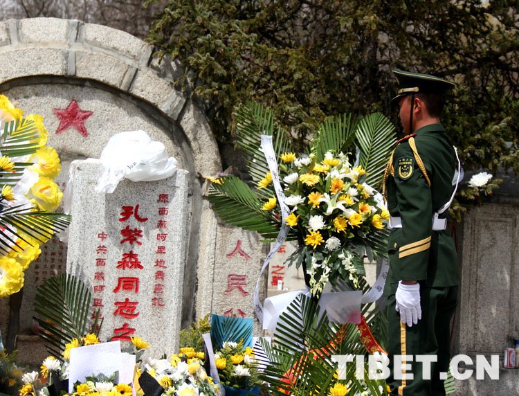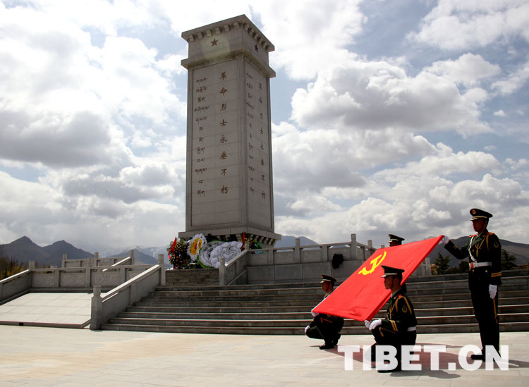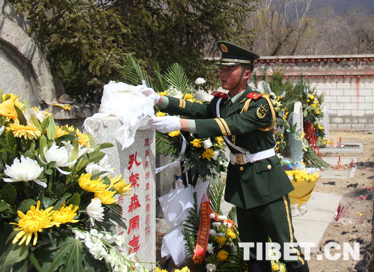 圖為西藏公安邊防總隊向先烈敬獻花圈