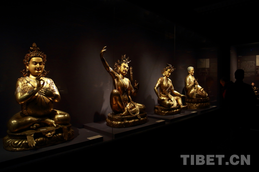 中國西藏網(wǎng)訊 日前,《天路文華——西藏歷史文化展》在首都博物館展出。展品匯集了北京、西藏、河北、重慶、青海五?。ㄊ小⒆灾螀^(qū))21家文物收藏單位共216件(組)文物。其中展出了大量的藏傳佛教造像,涵蓋了藏傳佛教寧瑪派、薩迦派、噶當派、噶舉派的佛像精品。