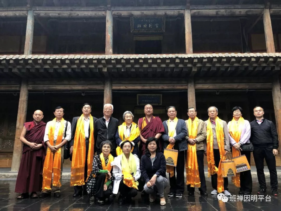 圖為周秉德一行在西寧宗喀大慈宏覺寺歷代班禪大師行宮前合影。圖片來自:班禪因明平臺