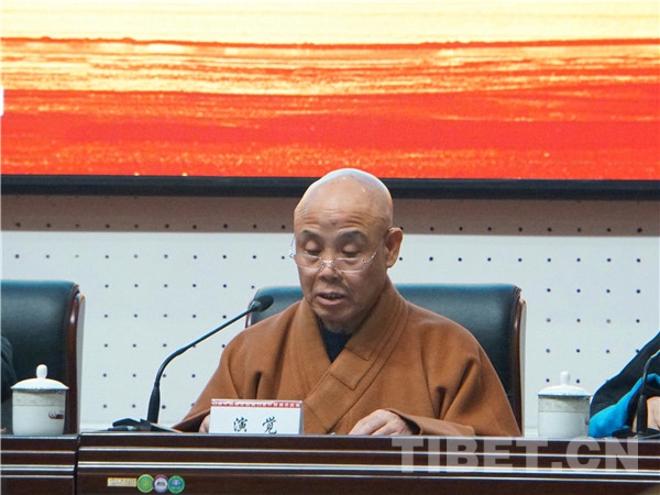 演覺法師總結(jié)了十世班禪大師的功績,他在發(fā)言中表示,要將對大師的懷念與學(xué)習(xí)轉(zhuǎn)化為推動藏傳佛教事業(yè)健康發(fā)展的動力,轉(zhuǎn)化為維護(hù)民族團(tuán)結(jié)、祖國統(tǒng)一的堅(jiān)定行動,轉(zhuǎn)化為莊嚴(yán)國土、利樂有情的篤實(shí)愿行。