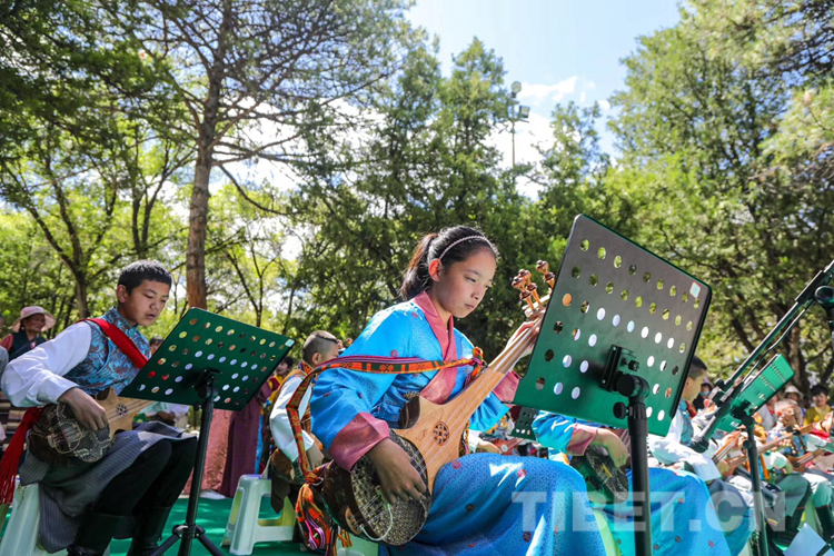圖為扎念琴班的學(xué)生們正在表演。 圖片由堆龍德慶區(qū)青少年活動中心運(yùn)營方提供