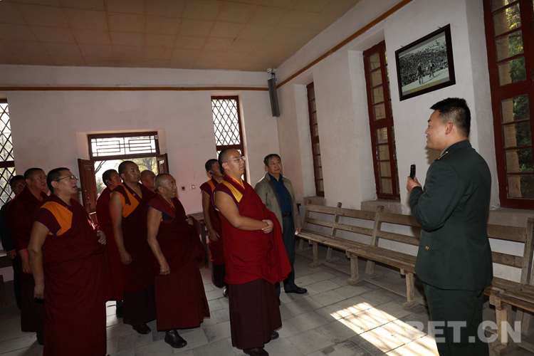 圖為十一世班禪在延安楊家?guī)X革命舊址參觀