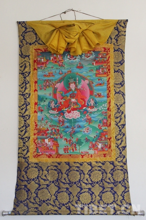 1924年,烏金拉松的兒子江村達吉出生了。他從小跟隨父親學(xué)習(xí)勉唐畫派繪畫技藝,成長為一名遠近聞名的繪畫藝人。類烏齊寺八世吉仲活佛非常器重這位畫師,曾數(shù)次特意邀請他繪制唐卡,后來,江村達吉成為了八世吉仲活佛的畫師。