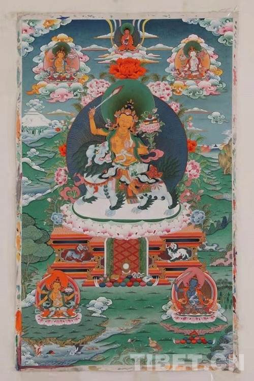 走進曲扎的家,客廳一面白墻上并排掛著的四幅唐卡格外醒目,隱藏于作品背后的祖孫四代跨越一個多世紀的接續(xù)傳承,從他口中被娓娓道來。