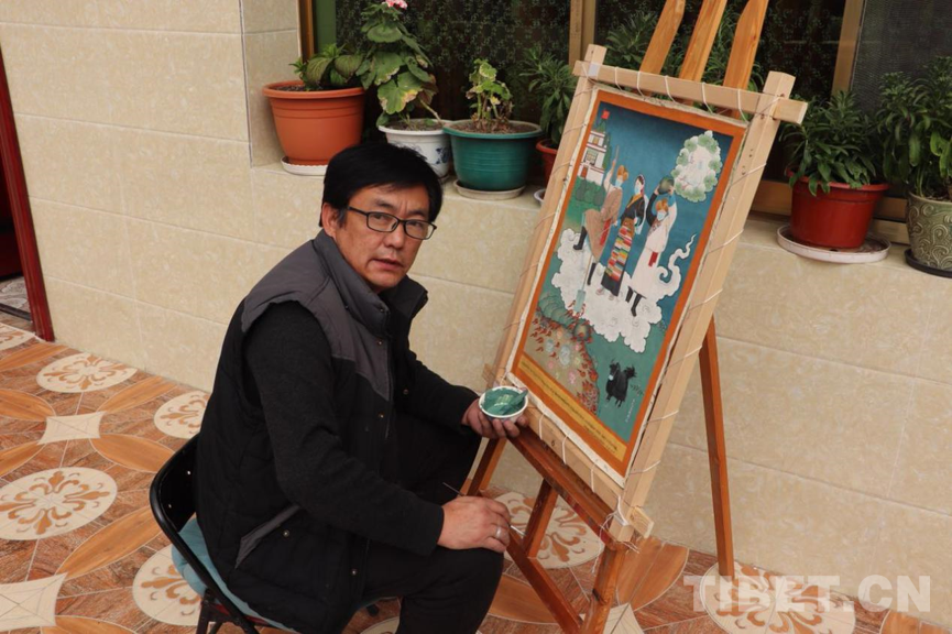 繪制完戰(zhàn)“疫”主題唐卡,旦巴云丹并沒有停下來。他要忙著經(jīng)營堆龍日姆勉唐派唐卡藝術(shù)農(nóng)民專業(yè)合作社。這個自2015年成立的合作社,已有15名群眾參與其中。旦巴云丹要負(fù)責(zé)他們的唐卡繪畫教學(xué),還要負(fù)責(zé)合作社產(chǎn)品對外銷售,只有這樣,才能讓周邊的群眾也跟著致富。(中國西藏網(wǎng) 記者/王媛媛 圖片由旦巴云丹提供)