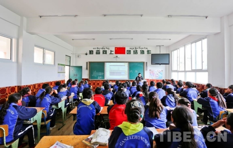 圖為甘孜縣民族中學(xué)教師在進(jìn)行多媒體教學(xué)