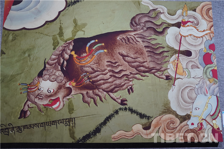 牦牛走進了藏族人民的生活,在幾千年的相處中,牦牛升華成任何一種事物和元素,完美融入了壁畫、唐卡、建筑等多種藝術創(chuàng)作中。