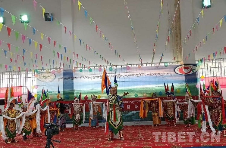 圖為學(xué)生們演格薩爾王藏戲