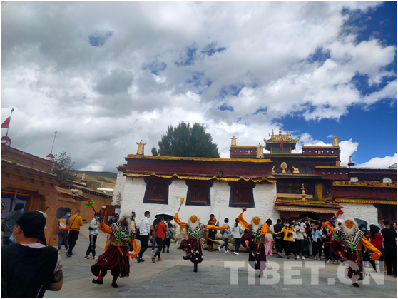 圖為游客觀看藏戲表演