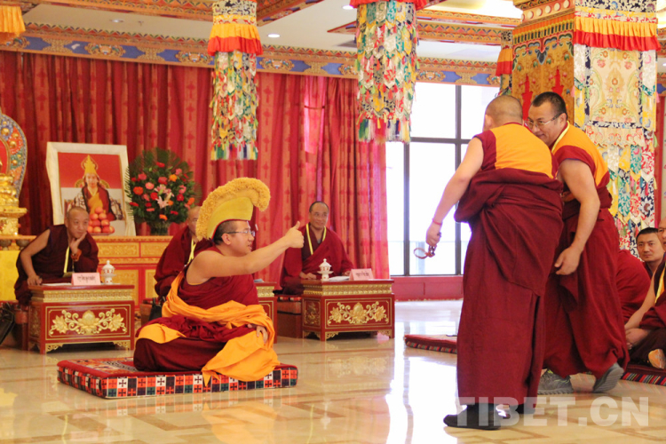 圖為辯經(jīng)考試現(xiàn)場的“唇槍舌戰(zhàn)” 攝影:王茜