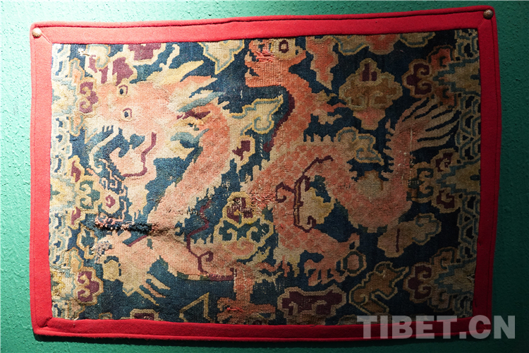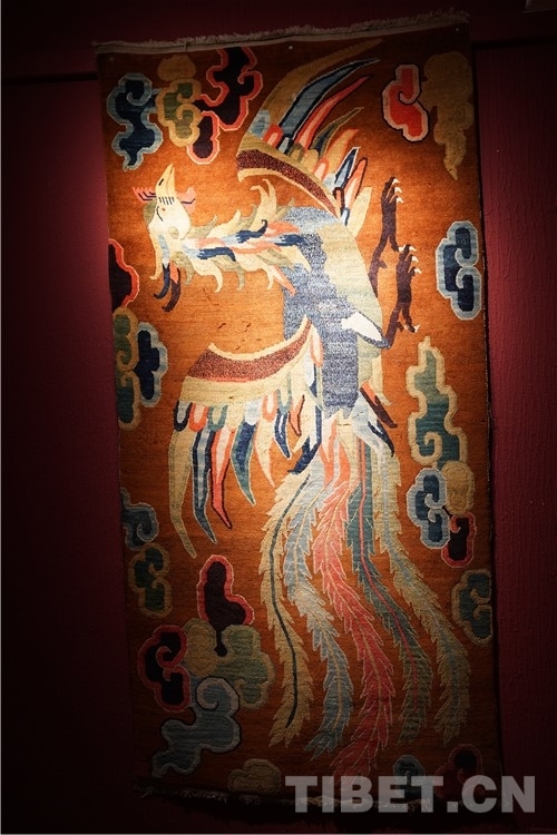 “本次展覽的藏毯,色彩搭配和編織都是技藝一絕,尤其是圖案寓意深遠,最具特色的是龍身鳳尾的龍鳳呈祥花紋非常精美?!苯橛^藝術中心的創(chuàng)始人徐應龍介紹,“上半身為龍身,下半身為鳳尾,體現了多民族的文化交往交流交融?!?/p>