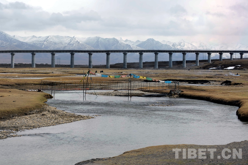 乘坐“天路”列車,通過藏北高原時,我喜歡從車窗遠(yuǎn)望。因為這片鐵路依傍著青藏公路的廣袤高原草甸地區(qū),不僅能看見藏羚羊、藏原羚、藏野驢等野生動物;還能看到清水河、楚瑪爾河、秀水河、長江源等江河上的特大橋。這些蜿蜒而上的特大橋以橋代路,在很好地保護(hù)凍土和草原綠地的同時,也為藏羚羊等野生動物在這一帶棲息和遷徙提供了保障通道。