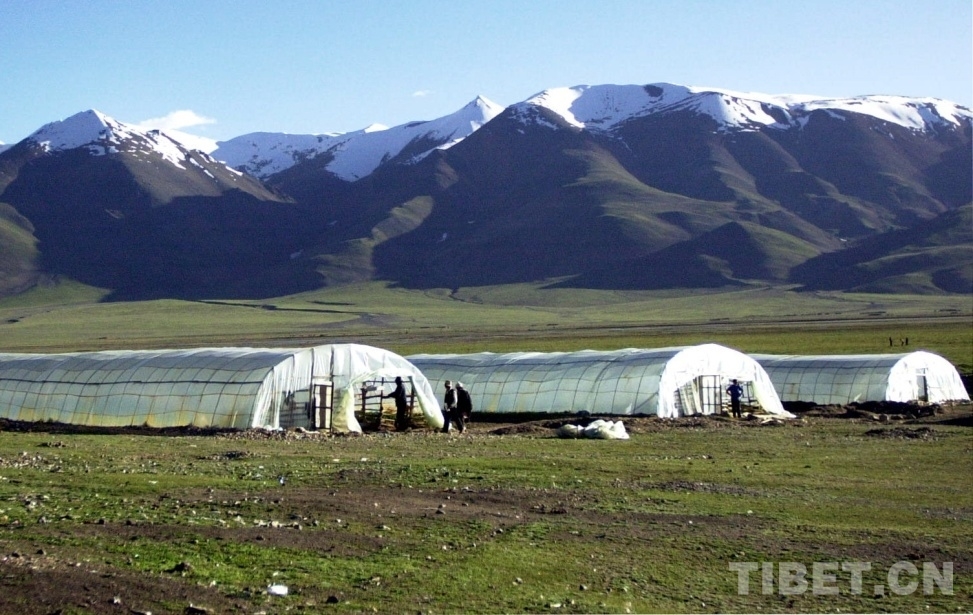 圖為藏北申扎縣城附近新建的太陽能蔬菜大棚,解決了當(dāng)?shù)厝罕姵圆穗y的問題 唐召明2001年7月4日攝