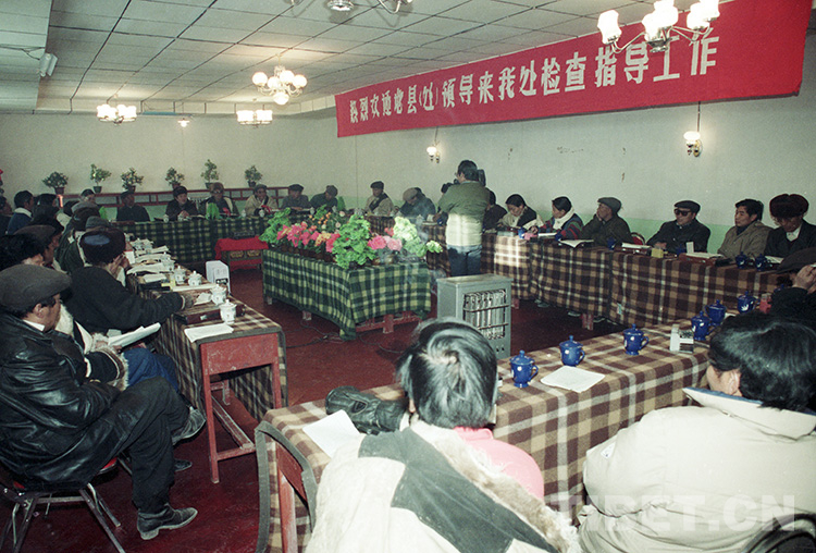 圖為西藏那曲地區(qū)基層政權(quán)建設(shè)工作現(xiàn)場會在文部辦事處召開(唐召明1989年12月攝)