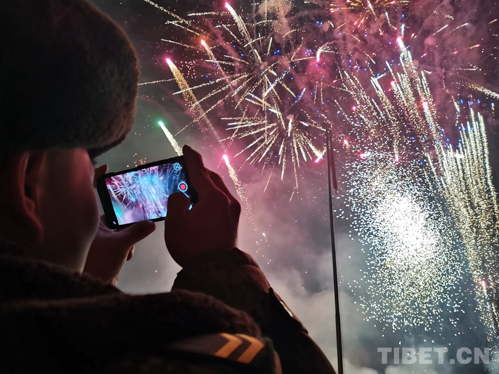 圖為駐藏部隊(duì)官兵錄一段煙花秀,分享給父母,說(shuō)一聲:“爸,媽?zhuān)蚁肽銈兞?!?攝影:牛玉壯
