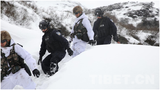 在南伊珞巴民族鄉(xiāng),巡邊隊(duì)伍正冒著大雪,穿過(guò)茂密的原始森林,攀爬險(xiǎn)峻的山石,沿著邊境線巡邏。