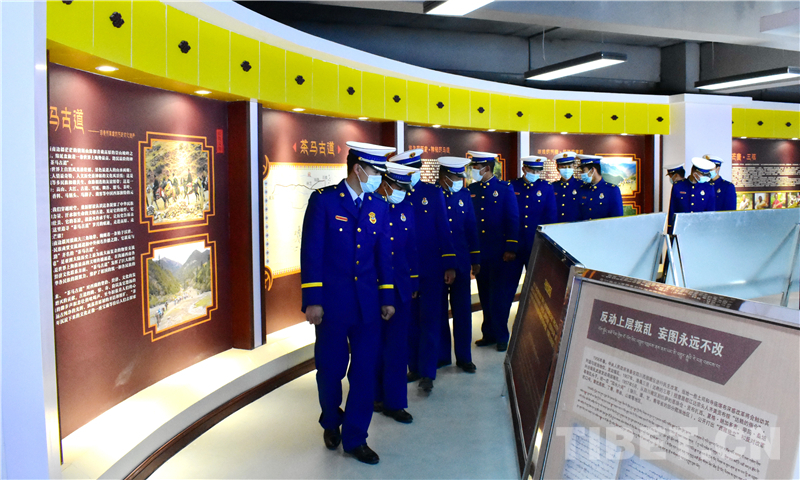 圖為左貢縣森林消防中隊(duì)駐芒康縣分隊(duì)全體指戰(zhàn)員重溫18軍進(jìn)藏的艱苦歷程 攝影:彭順雄