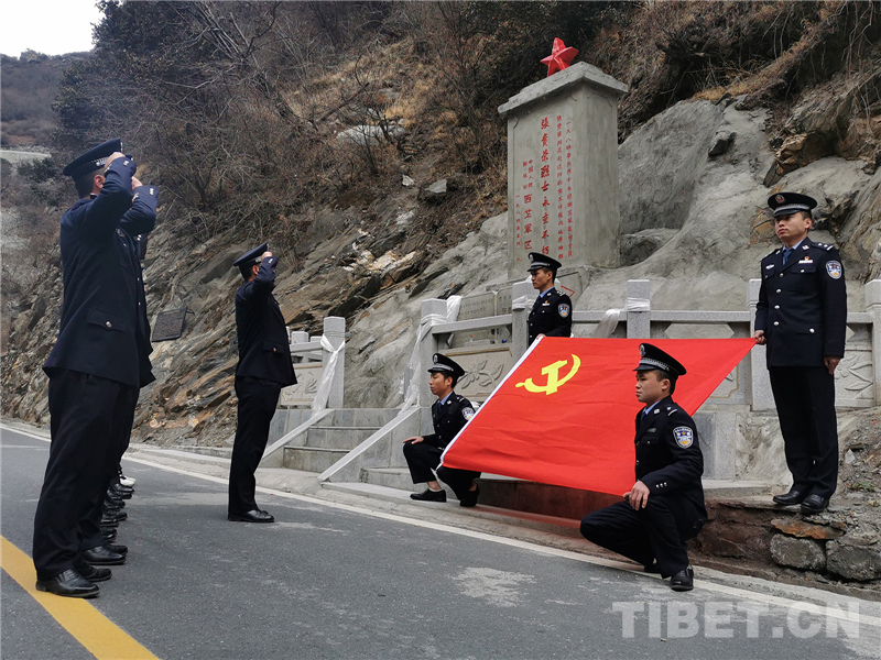 在山南市,西藏山南邊境管理支隊(duì)各級(jí)組織在祖國雪域邊關(guān)開展祭掃活動(dòng)。斗玉邊境派出所移民管理警察來到位于駐地邊境一線的“將軍崖”,將佇立于此的烈士紀(jì)念碑擦拭干凈,并將鮮花放置碑前,深情緬懷37年前在此巡邊時(shí)因突發(fā)重疾而獻(xiàn)出寶貴生命的原西藏軍區(qū)司令員張貴榮將軍。在紀(jì)念碑前,在黨旗之下,在群山環(huán)抱之中,移民管理警察高舉緊握的右拳,再次重溫入黨誓詞,將革命先烈的戍邊遺志與奉獻(xiàn)精神深銘心間。