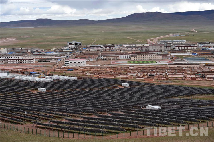 這是雙湖縣城新貌。前景是光伏電站成片的發(fā)電板(唐召明2017年7月25日攝)