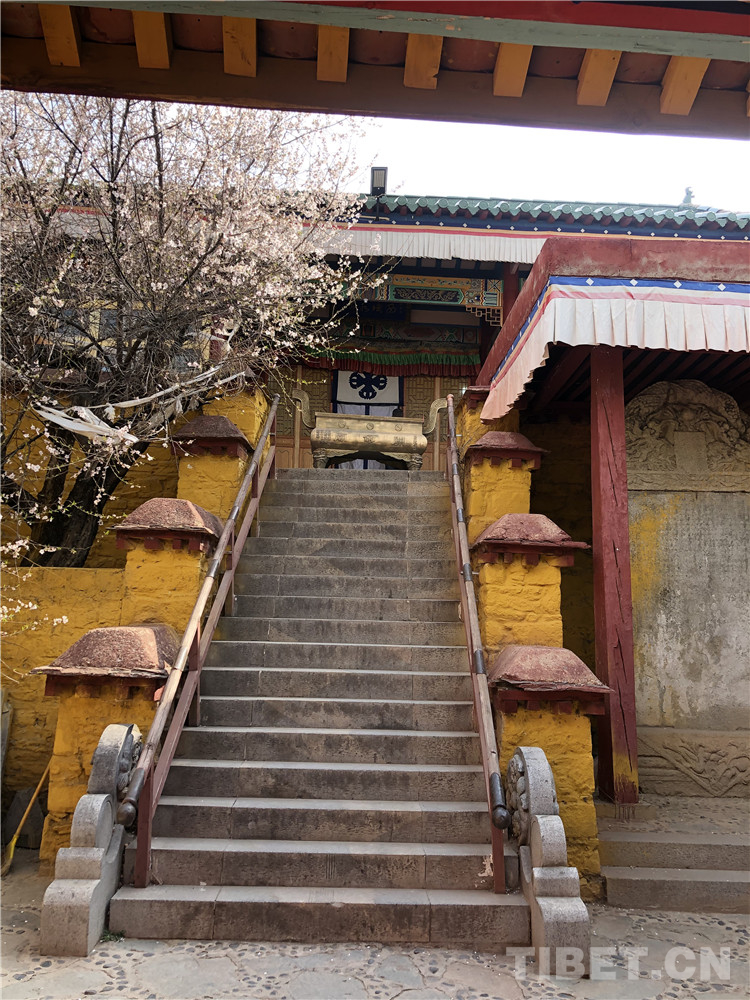 這段碑文充分表明了,清朝中央政權(quán)對(duì)西藏地方的守護(hù)和管理。也表現(xiàn)出建廟立碑者大將軍??蛋驳男亟蠛蜌馄?。在看碑文時(shí),腦子里浮現(xiàn)出那場(chǎng)發(fā)生在18世紀(jì)的戰(zhàn)爭(zhēng),清朝大將軍福康安率領(lǐng)滿漢蒙藏各民族組成的騎兵,刀劍相錯(cuò)、血雨腥風(fēng)的畫面。一抬頭,廟中院子里卻靜謐異常,只有那株開(kāi)滿花的桃樹(shù),散落幾片花瓣,似乎在隨我一同追憶和祭奠這段歷史中的高光時(shí)刻。這段歷史中充滿了各種有益于我們這個(gè)時(shí)代的精神內(nèi)核,不畏艱險(xiǎn)保家衛(wèi)國(guó)、各民族兄弟同仇敵愾、對(duì)共同民族英雄的認(rèn)可等,這些都凝聚在這個(gè)安靜的上午,這座名字很獨(dú)特的小廟之中。抬起頭,從關(guān)帝廟的正門,往外望去,整個(gè)拉薩城充滿活力和現(xiàn)代氣息地展現(xiàn)在眼前,這座寺廟的靜謐似乎正像廟中供奉的兩位英雄一樣,默默地守護(hù)著這座城市的煙火氣息。