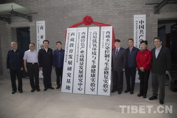 研討會開幕式之前,與會領(lǐng)導(dǎo)為西藏教育發(fā)展研究基地、西藏特色產(chǎn)業(yè)高質(zhì)量發(fā)展研究中心、高原低氧環(huán)境與生命健康實驗室、西藏水污染控制與生態(tài)修復(fù)實驗室同時掛牌揭幕。大會主旨發(fā)言之后,西藏民族大學(xué)黨委常委、副校長史本林、西藏駐格爾木辦事處(藏青工業(yè)園區(qū))黨委書記邱川共同簽訂雙方合作框架協(xié)議,旨在加強(qiáng)科研交流合作,共同為西藏社會高質(zhì)量發(fā)展做出貢獻(xiàn)。