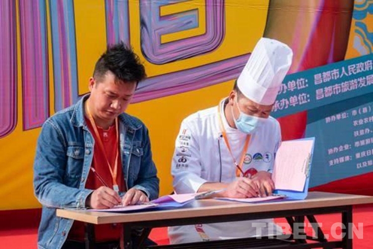 此外,活動(dòng)現(xiàn)場(chǎng)還進(jìn)行了非物質(zhì)文化遺產(chǎn)體驗(yàn)活動(dòng)和產(chǎn)品展銷(xiāo)活動(dòng),共有32個(gè)企業(yè)參加。據(jù)悉,截止活動(dòng)結(jié)束,現(xiàn)場(chǎng)累計(jì)交易額5萬(wàn)余元。重慶文旅館同參賽人員進(jìn)行現(xiàn)場(chǎng)簽約,這對(duì)昌都餐飲業(yè)的推廣和發(fā)展具有重要的意義。(中國(guó)西藏網(wǎng) 記者/次旦拉姆 圖片由卓卓康巴美食大賽組委會(huì)提供)