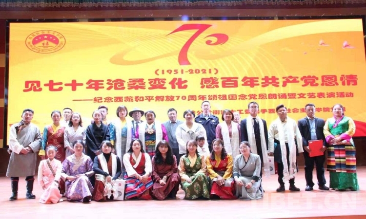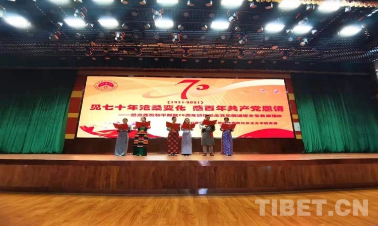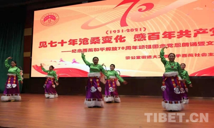 5月23日是西藏和平解放70 周年紀念日。23日上午,由西藏自治區(qū)拉薩市蔡公堂街道和西藏社會主義學(xué)院共同舉辦的紀念西藏和平解放70周年頌祖國、念黨恩朗誦暨文藝表演活動舉行。現(xiàn)場鮮花嬌艷,燈光炫目,旋律悠揚,歌聲嘹亮。