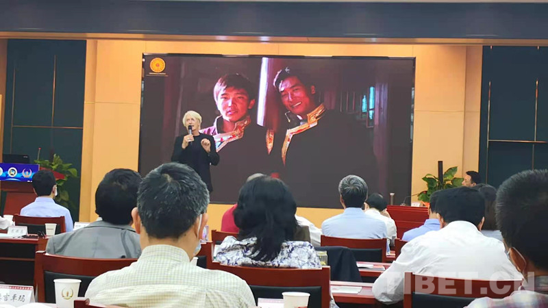 圖為美國作家、香巴拉工作室創(chuàng)始人龍安志在紀(jì)念西藏和平解放70周年學(xué)術(shù)研討會上進行題為《西藏文化可持續(xù)發(fā)展》的發(fā)言 攝影:劉莉