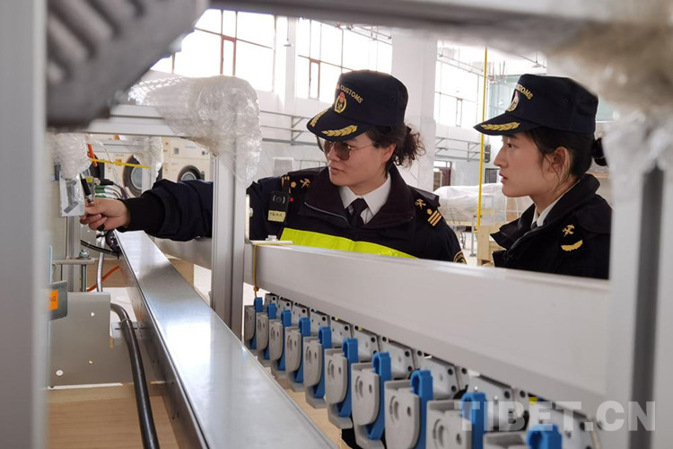 圖為拉薩海關(guān)派員對一批德國進(jìn)口洗滌設(shè)備開展目的地查驗(yàn)