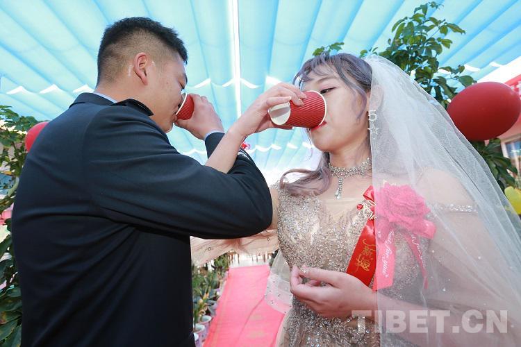 沒(méi)有鋪張豪華的迎親車(chē)隊(duì),沒(méi)有山珍海味的結(jié)婚宴席,大家在陽(yáng)關(guān)房里鋪上紅地毯、掛上彩色氣球,用鮮花和彩帶巧手裝點(diǎn)禮堂。繽紛的喜字掛在墻上,讓平日里莊嚴(yán)肅穆的營(yíng)區(qū)變成了另一番景象,讓新娘感受到了只有警嫂才有的至高禮遇。藏青藍(lán)與婚紗白交融,浪漫與忠誠(chéng)在海拔4300米演繹著動(dòng)人的交響曲。