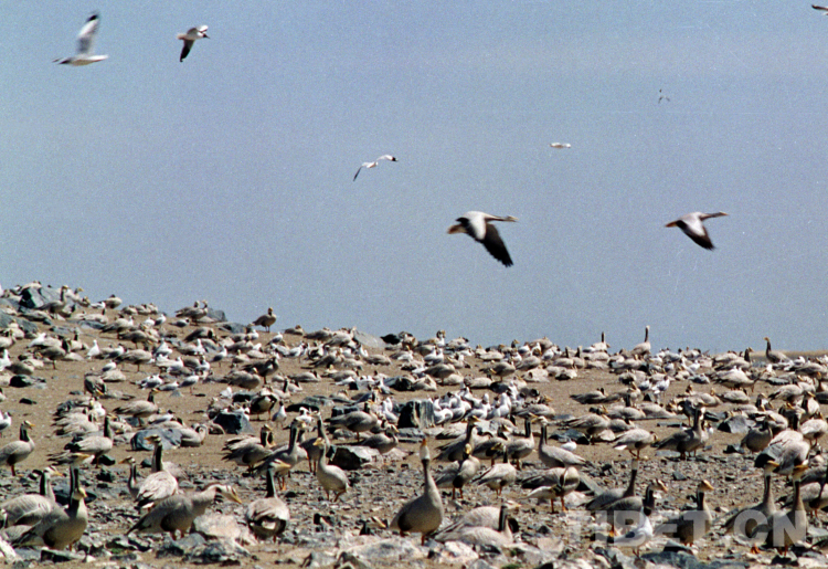 這是俄亞爾錯鳥島上棲息的斑頭雁和魚鷗(唐召明2009年攝)