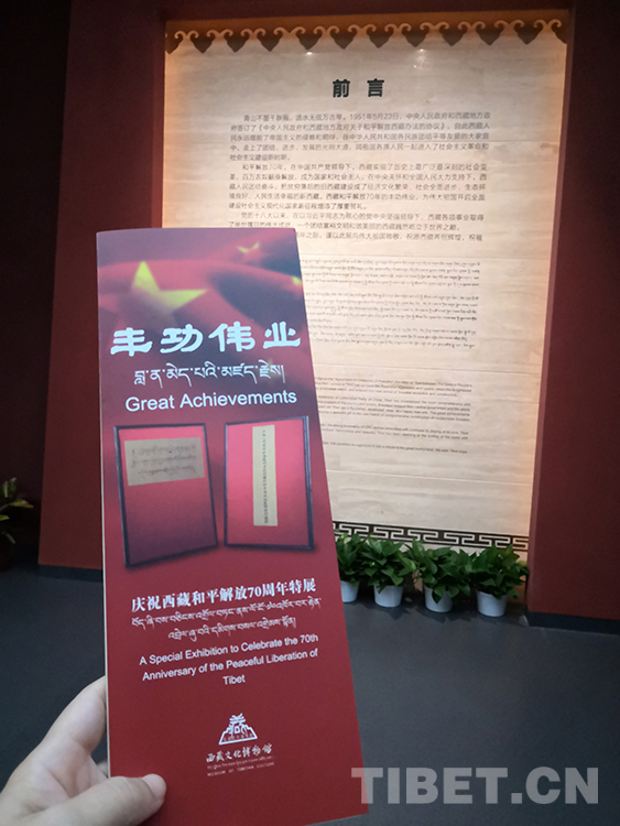 展覽以350多幅圖片、61件(套)珍貴實(shí)物和文獻(xiàn),采用虛擬現(xiàn)實(shí)、多媒體互動(dòng)等表達(dá)手段,通過(guò)實(shí)物模型、場(chǎng)景復(fù)原、幻影成像、三維模型等多種形式,集中展現(xiàn)西藏和平解放70年來(lái)發(fā)生的歷史性轉(zhuǎn)變、取得的歷史性成就。