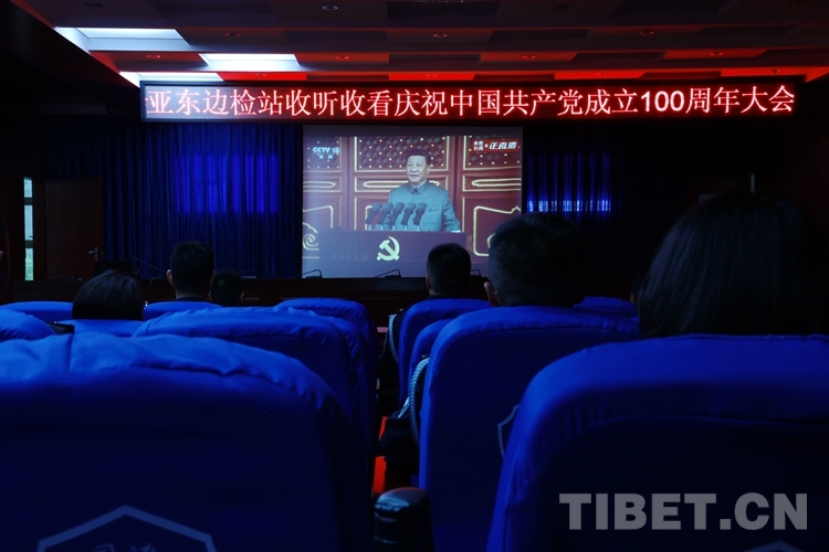 圖為西藏亞東出入境邊防檢查站組織民警觀看慶祝中國共產黨成立100周年大會