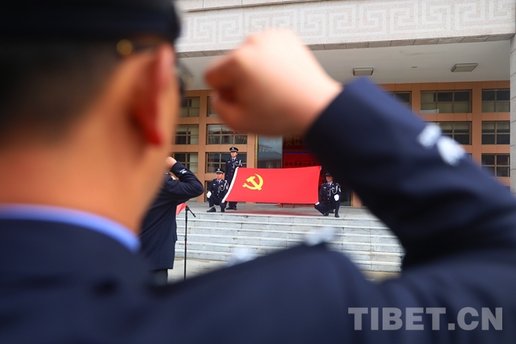 圖為林芝邊境管理支隊(duì)民警重溫入黨誓詞 攝影:姜凱峰