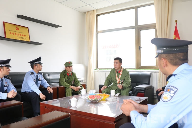 圖為對越自衛(wèi)反擊戰(zhàn)功臣蒲體超同志正在向里龍邊境派出所民警講述親身經(jīng)歷的故事 攝影:曹忠皇