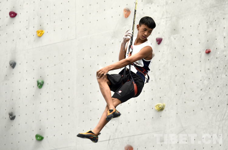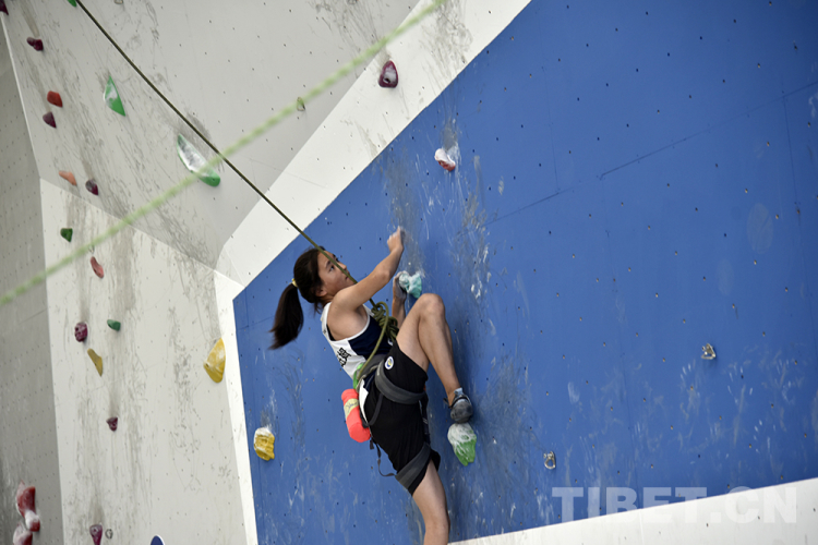圖為專業(yè)運(yùn)動(dòng)員進(jìn)行攀巖表演 攝影:王媛媛