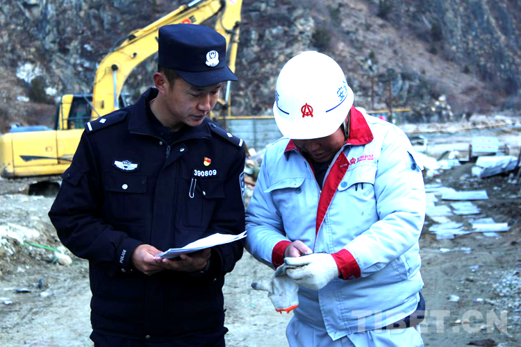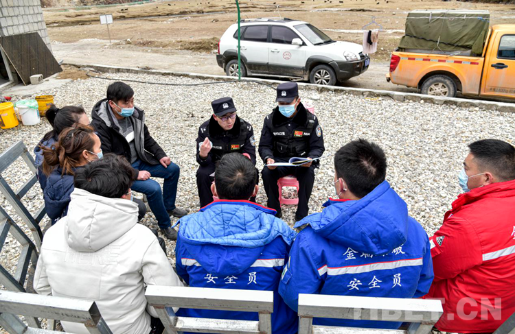 圖為洛桑旦增向轄區(qū)務(wù)工人員宣傳邊境地區(qū)管理規(guī)定和政策