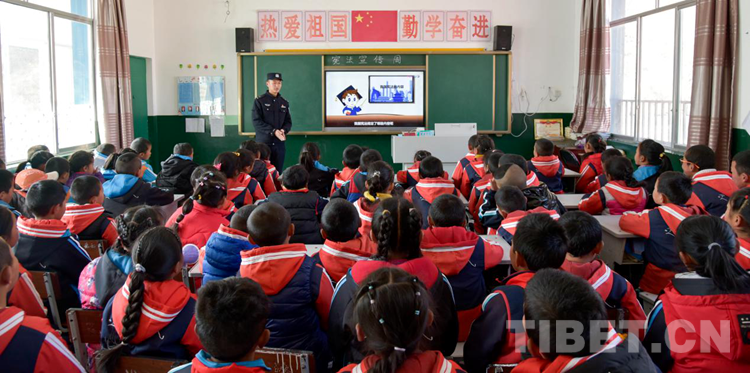 圖為洛桑旦增給學(xué)生宣講普法知識(shí)