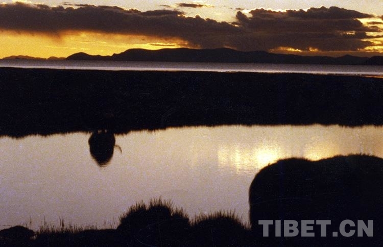 圖為出現(xiàn)在藏北無(wú)人區(qū)黃昏時(shí)分的美麗奇觀(唐召明1991年攝)