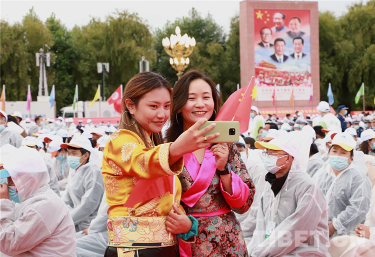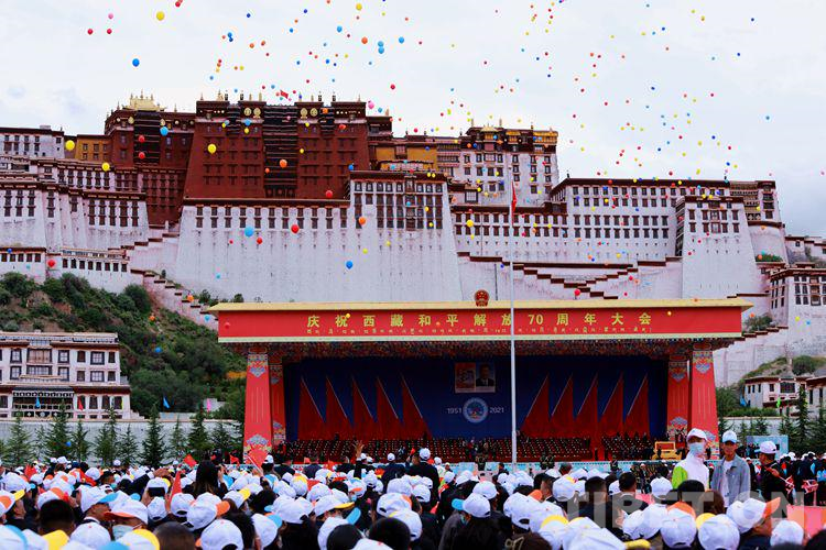 8月19日,西藏自治區(qū)2萬(wàn)多名各族干部群眾歡聚在布達(dá)拉宮廣場(chǎng),參加慶祝西藏和平解放70周年大會(huì)。
