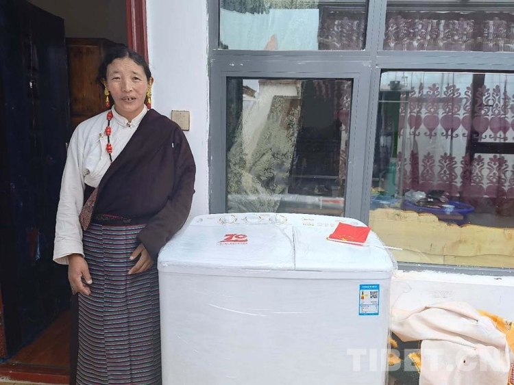 圖為西藏自治區(qū)那曲市色尼區(qū)羅瑪鎮(zhèn)凱瑪村村民美美家收到的中央代表團(tuán)贈(zèng)送的禮物——大功率洗衣機(jī) 攝影:吳建穎