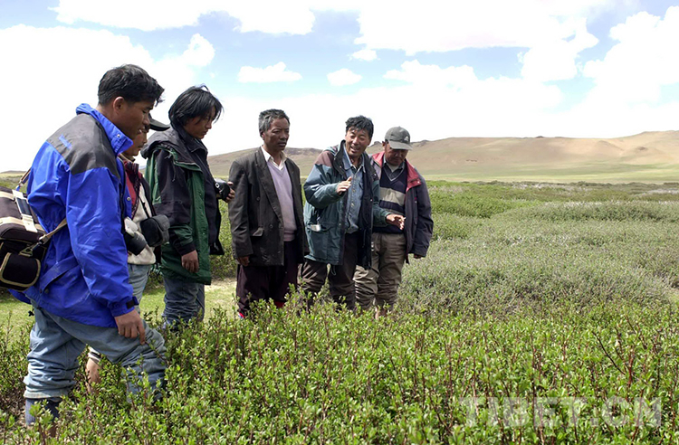 這是藏北無(wú)人區(qū)科考團(tuán)科考人員在班戈縣保吉鄉(xiāng)新發(fā)現(xiàn)的大片山柳灌木叢。它是迄今為止所發(fā)現(xiàn)的世界上海拔最高的大片山柳灌木叢(唐召明2001年攝)