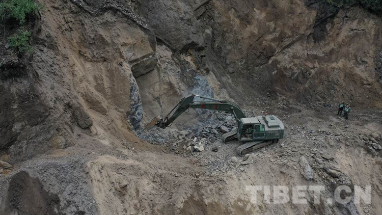 圖為該支隊(duì)官兵采取“雙向掘進(jìn)”戰(zhàn)法全力搶修便道