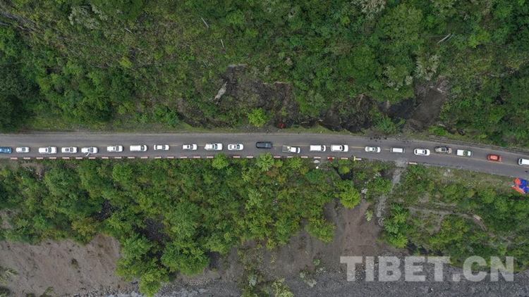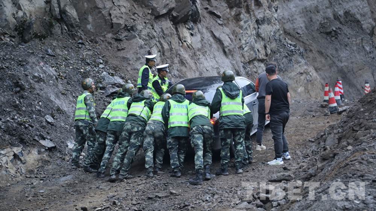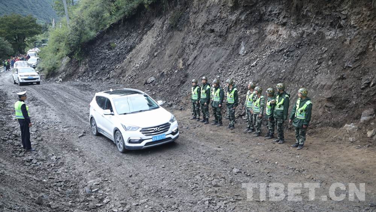 中國西藏網(wǎng)訊 8月28日18時(shí)許,經(jīng)過武警第二機(jī)動(dòng)總隊(duì)某支隊(duì)官兵連續(xù)5天的艱苦鏖戰(zhàn),搶修出一條長215米的便道,使因路基垮塌造成國道318線西藏自治區(qū)林芝波密境內(nèi)段斷通的道路成功恢復(fù)通行,可供小型車輛單向通行。在武警官兵的指揮下,滯留兩端的車輛有序帶隊(duì)安全通過。