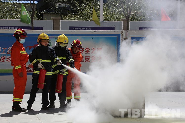圖為拉薩邊檢站民警進(jìn)行消防器材實操 攝影:王佳豪