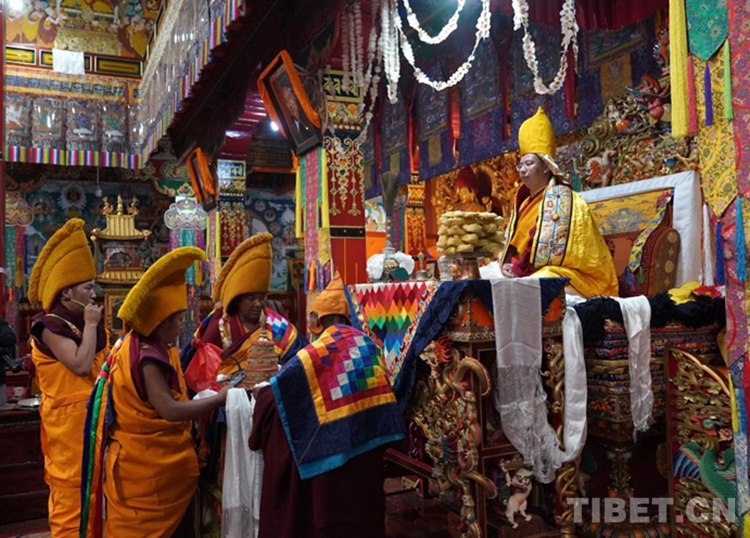 圖為班禪在增寺拋灑青稞、祈愿豐收 攝影:王淑