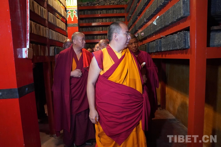 隨后班禪參觀了寺院的印經(jīng)院,納塘寺印經(jīng)院被譽(yù)為“西藏文庫”。曾刻制印刷大量的藏文經(jīng)典著作。其中包括大藏經(jīng)《甘珠爾》108部、《丹珠爾》225部,都是完整的精刻版,除文字外還有套色版畫。此套印版的首次印刷本現(xiàn)珍藏于扎什倫布寺和布達(dá)拉宮。